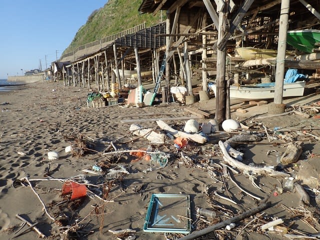かってこの浜で海女さんが焚火で暖を取り、亭主を沖に送り出した後のおんなしょ(女衆)が、賑やかに魚を収めて出荷する木箱を釘打ちして作っていた。