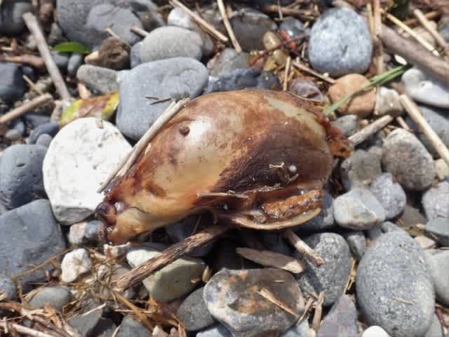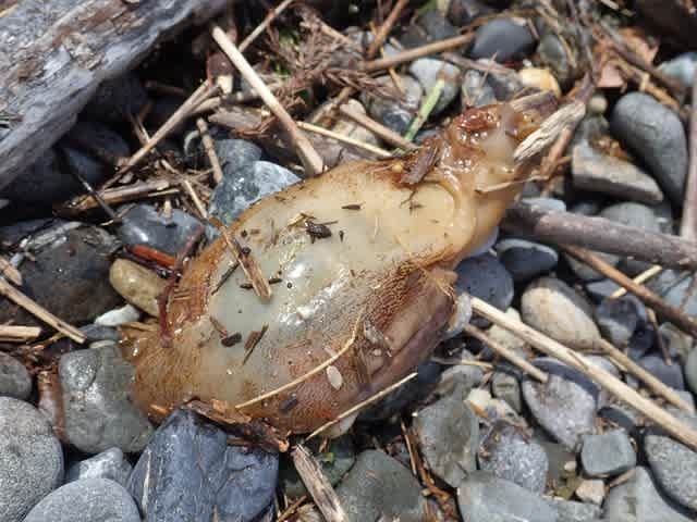 波打ち際に謎の生物発見・・・巨大な殻なしのカタツムリ?ヤマナメクジ?