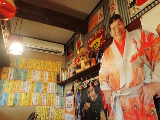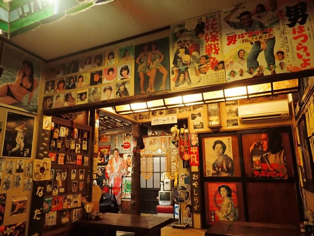 見知らぬお客さん同士でも、懐かしい映画やアイドル、プロレスのポスターを切っ掛けに「あの時はさぁ・・・」と話し込んだりする温かい雰囲気の居酒屋。