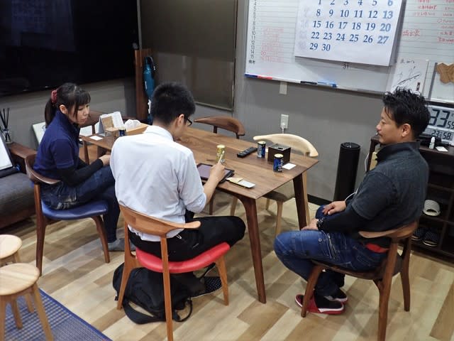 家具は、市内の建築店「匠」さんで作っているオーダー品。奥の別嬪さんが家具職人さん!