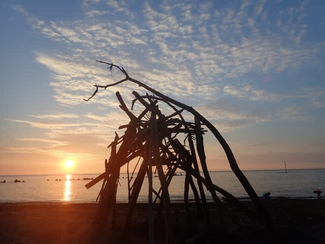 筒石は漂流物の多さや種類が糸魚川随一で、この日は「ミッキーさんの冠」の他、ロシア製のウオッカの瓶、面白い形の流木などのお宝が拾えて、海遊びを堪能してもらえたようだ。