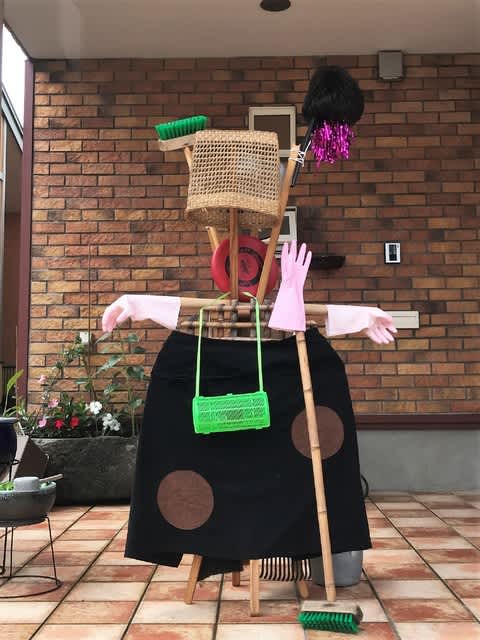 大掃除の道具を乾かしているにしては、虫カゴと右上のカツラが解せんが、もしやアマビエのつもりか?
