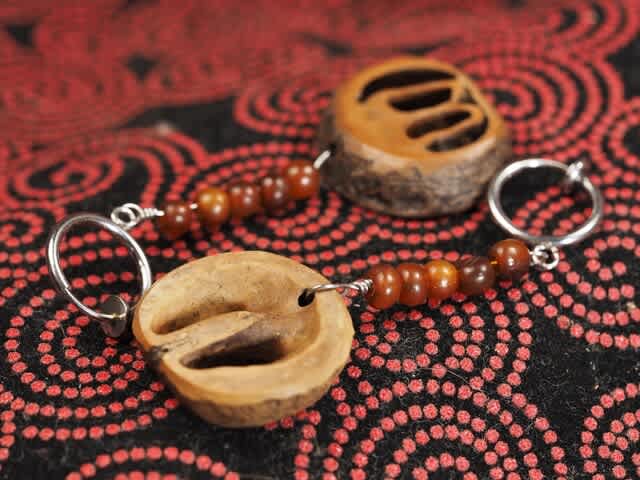 長者ヶ原遺跡で拾ったクルミで作った縄文イヤリング