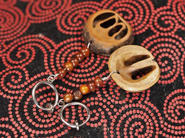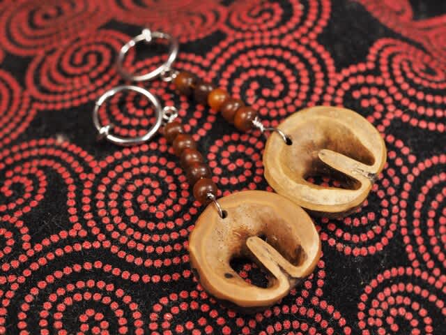 長者ヶ原遺跡で拾ったクルミで作った縄文イヤリング