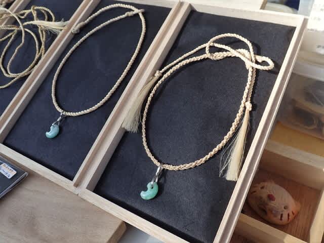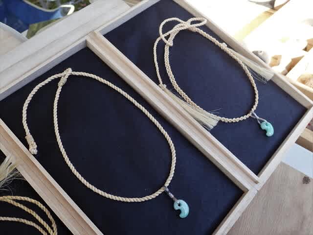 大麻チョーカーに勾玉を付けて桐の化粧箱に入れたら、なかなか見栄えがいいですねぇ。