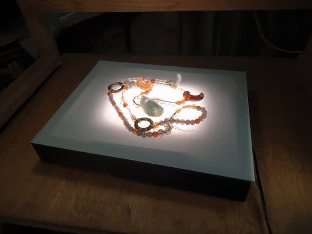気に入ったヒスイ製品を透過させるとどんな色になるのか?と、来客に楽しんで欲しい。