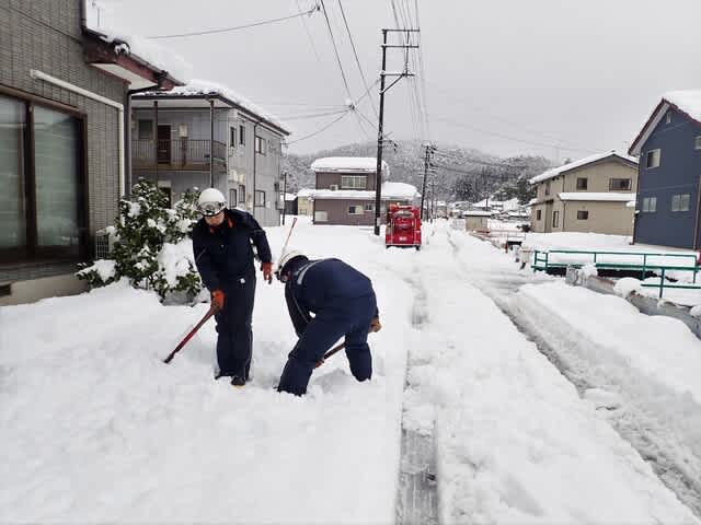消防団は雪に埋もれた消火栓お掘り出していた。