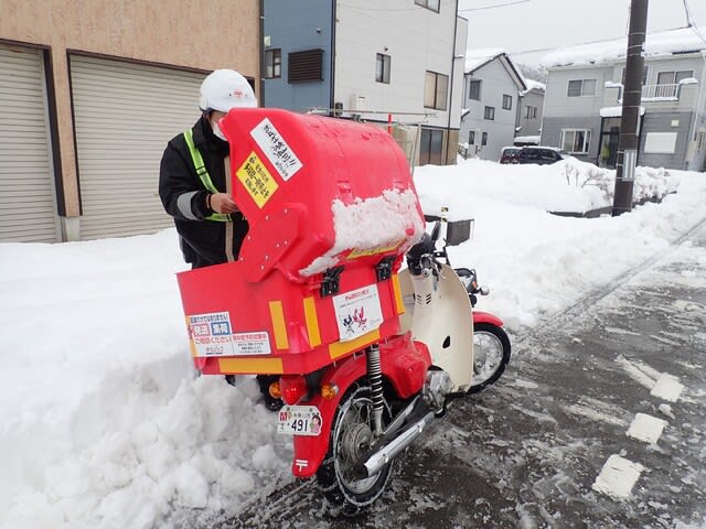 雪国ではチェーンを巻いたバイクで郵便配達をしていると都会の人に話すと、冗談だと思われてまうが本当なのですぞ。