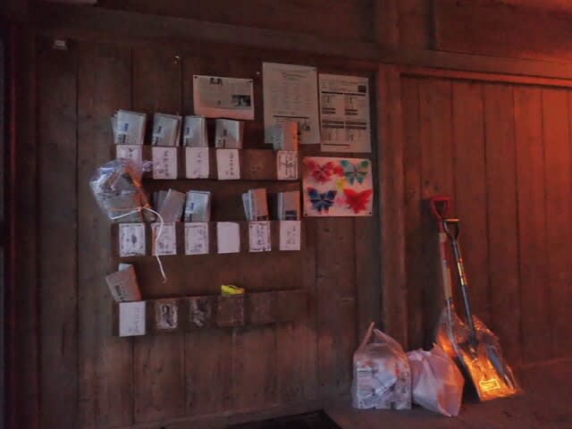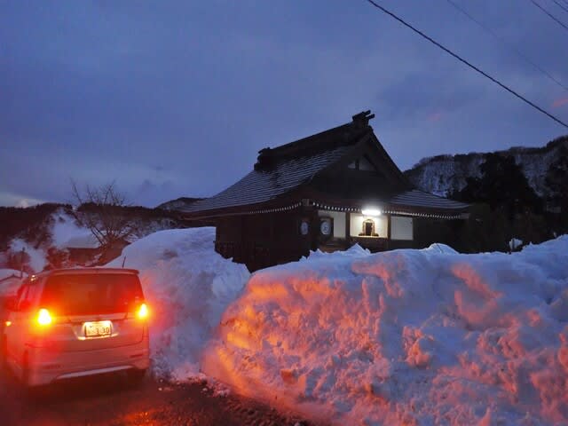 よくしたもので、お堂はこんな時のために常夜灯が灯され解放してあり、中には新聞受けまであった。これぞ雪国の知恵。