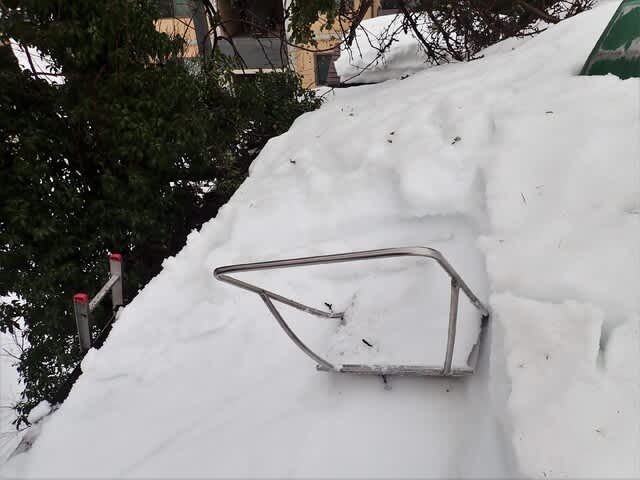 お向かいで除雪していたチームは、律儀に屋根材が見えるまで綺麗に除雪していたので、滑って危なそうだったゾ。