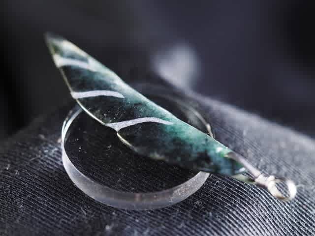 ヒスイは様々な鉱物が入り混じる岩石だから、綺麗な緑色の部分だけを使うと無駄が多く出てしまう。