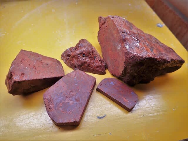 佐渡の赤玉(碧玉・ジャスパー)を加工したいものだと投稿したら、青森の縄文仲間の左京窯さんから贈られてきたゾ。