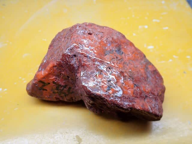 佐渡の赤玉(碧玉・ジャスパー)を加工したいものだと投稿したら、青森の縄文仲間の左京窯さんから贈られてきたゾ。