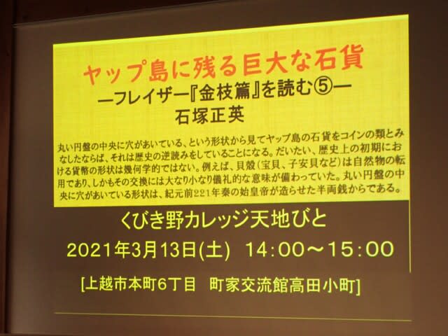 大学教授の講座を無料で聴講できるのに、若い参加者がいなかったのは実にもったいないぞ、上越方面の人たち。