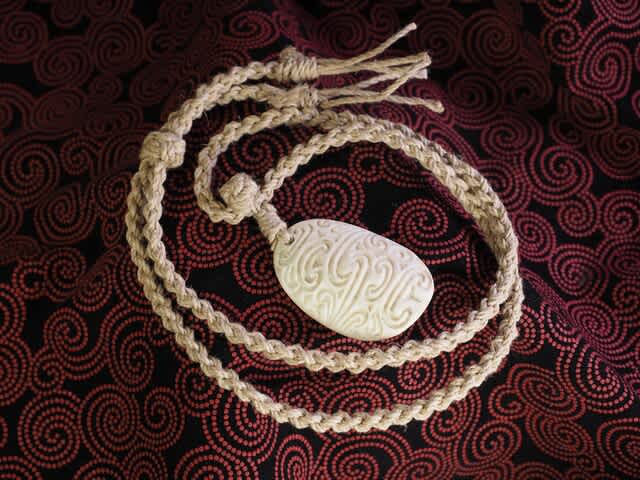 麻紐も同じ素材で自在ストッパーが付いていて、好みの位置で長さが決められるとあっては、ホンモノの縄文人でも欲しがるに違いない。