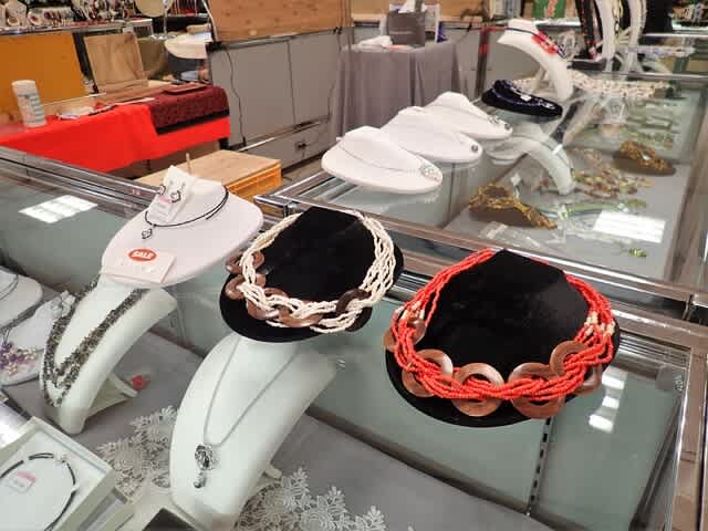 郡山のうすい百貨店の催事場でアクセサリー類の販売をしているのは、お洒落なジュエリー販売専門の方々ばかりで、私のブースだけやたらに土俗的で浮いていて肩身が狭いような。