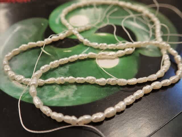 そのなかで真珠の卸売り販売をしている方に、小粒の淡水真珠とコラボした作品を作ってみたいのだが・・・と相談したら、気前よく半連をプレゼントしてくれた。ムハ~!と鼻息も粗くなろうというもの。