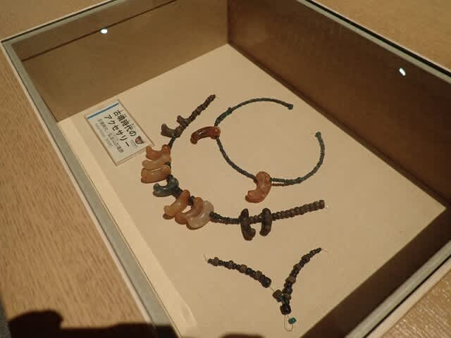 もっとも玦状耳飾りは前期の遺物だし、その時代のヒスイ加工は不定形の大珠がやっと出てくるくらいだからヒスイである可能性は低く、滑石ではないかと思う。それにしても見事な造形で珍品ではある。