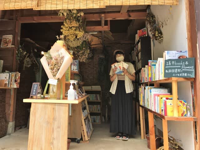 Uターン帰郷したご夫妻が始めたそうだが、海を見下ろす静かなエリアにある「ちいさな村の図書館」のファンになった。花屋さんもしているお洒落な孫平さん。