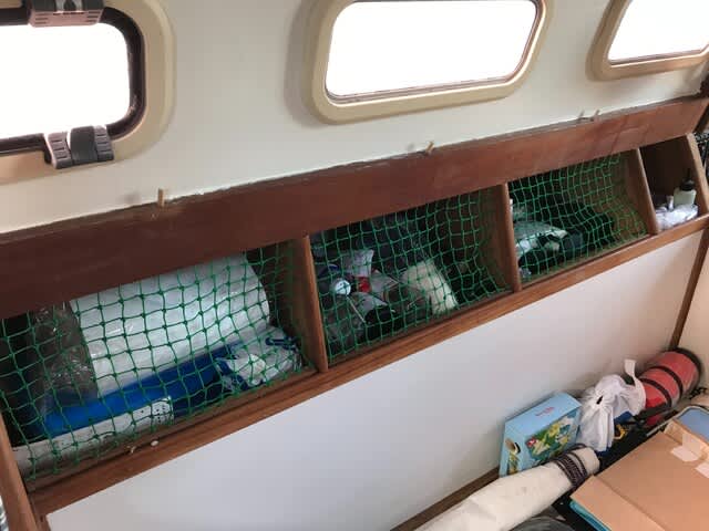 またキャビン内の整理棚もふつうは引き違い戸だが、ネットを上から桟に差し込む開閉方式だから、どこに何が入っているのか一目瞭然で湿気も籠らない工夫がされていて、これらは恩田機関長のアイデアとのこと。