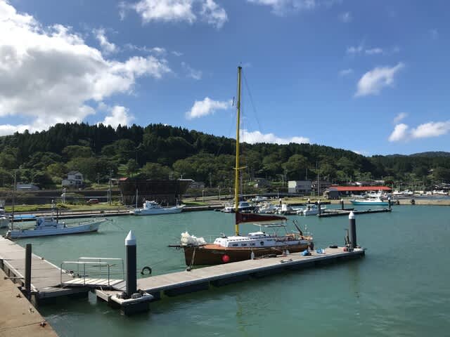 #遊びにも門戸を広げる有間川漁港は多目的港湾施設 #上越市の木造ヨットエズキズム号