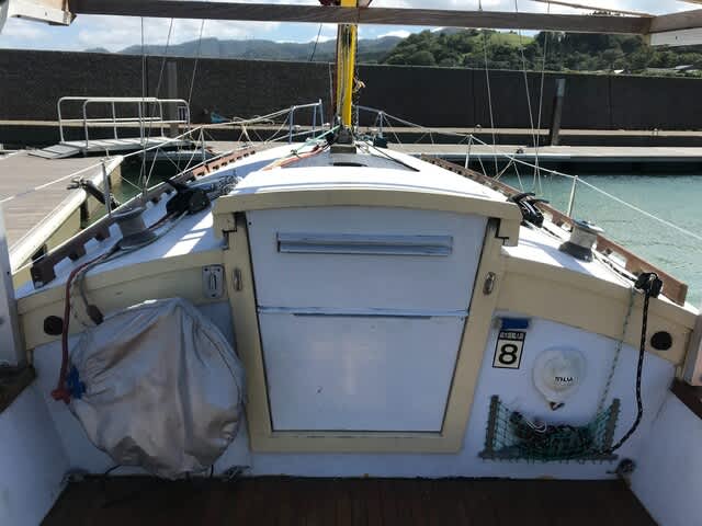 レース指向の艇や高校のヨット部なら海に出るような日和でも、港湾口の岸側は岩場、水路に砂が堆積している部分もあり、港の出入りの際に使う船外機は非力な15馬力、喫水の深いエズキズム号は座礁のリスクがあるとのオーナー判断で出航とりやめ。