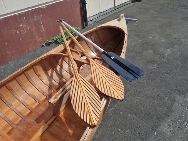 色んなパドルで漕いでみたが、江塚オーナー自作の古風なパドルがベストだった。パドルにしては面取り無しで厚めなのでもう少し薄く削る必要がありそうだ。