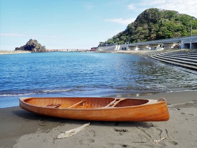 江塚オーナー自作の木造セイリングカヌーが能生のB&G海洋クラブの艇庫で保管できることになり、ついに弁天浜に浮かべることができた。
