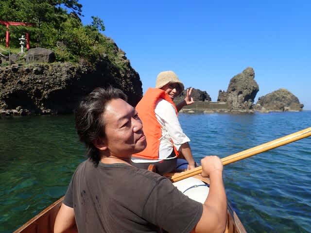 映画「くじらびと」を観て興奮冷めやらない仲間を海に誘ったら、凪だったので弁天岩の沖に出て奥弁天を周ることができた。