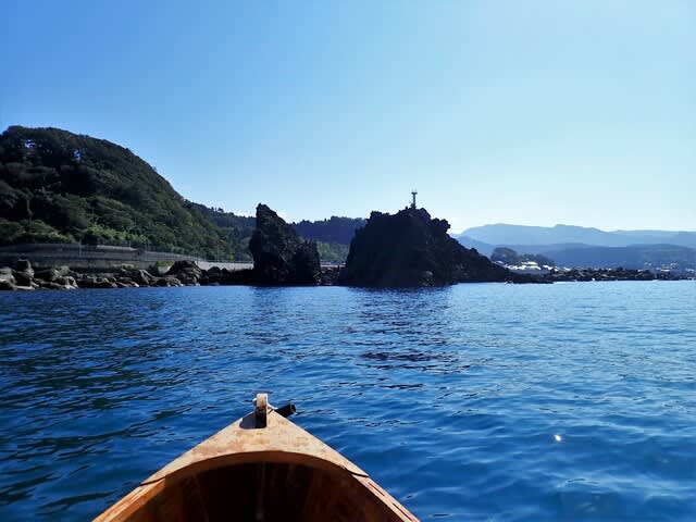 映画「くじらびと」を観て興奮冷めやらない仲間を海に誘ったら、凪だったので弁天岩の沖に出て奥弁天を周ることができた。
