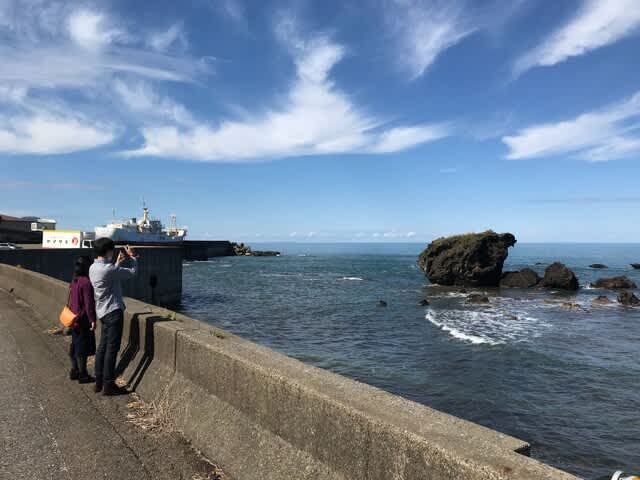 凪だと弁天浜から小泊漁港を周って「とっとこ岩」に行くことができる。とっとこは糸魚川方言でニワトリのこと。