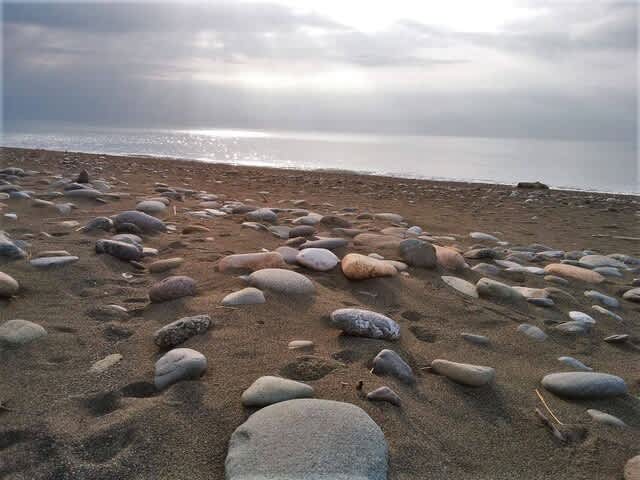 夜は香取学芸員も交えて露天風呂で2時間近く雑談。石浜ではシーカヤックが痛むし、波が高いと出ることも戻ることも難しいのだ。