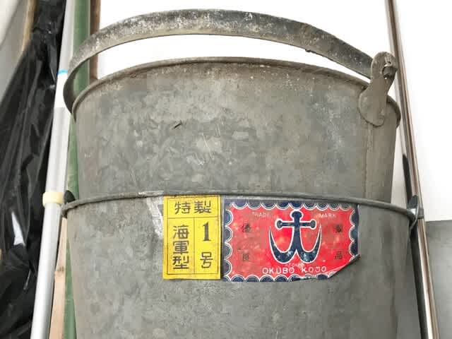 「海軍型バケツ1号」とシールが貼られたブリキバケツは、戦前から使われずに置いてあったのだろうか?