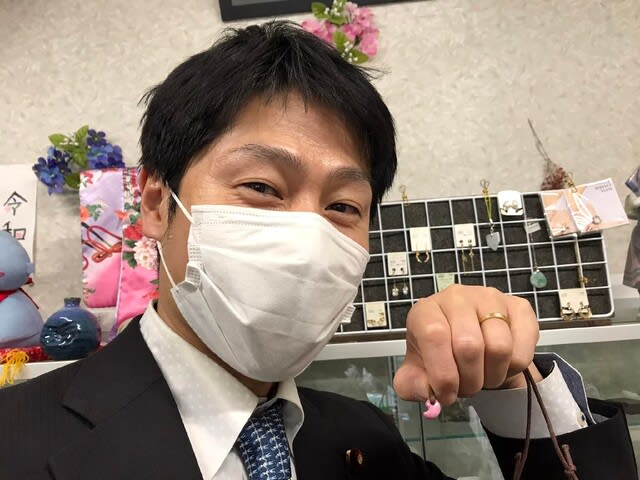 ピンクヒスイの勾玉を納品にいったら、衆議院議員の梅谷守さん(立憲民主党)とばったり。