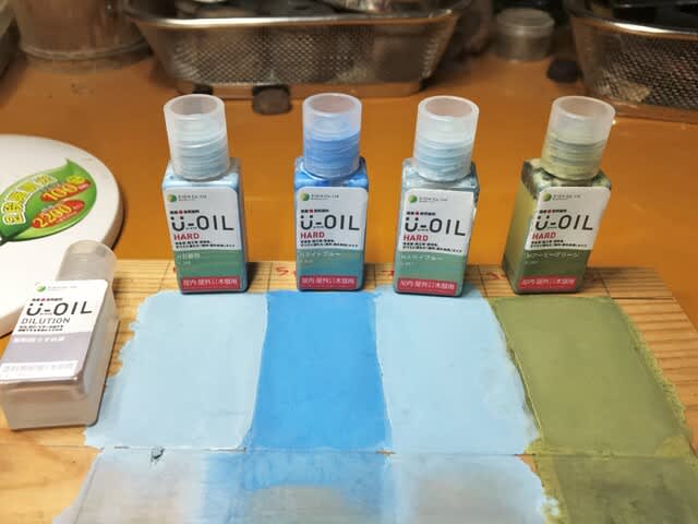 工房の増築部には憧れの腰壁を張る予定で、開口枠も含めて塗装するのだが、塗装屋の友人に教えてもらって自然素材の塗料のサンプルを取り寄せた。