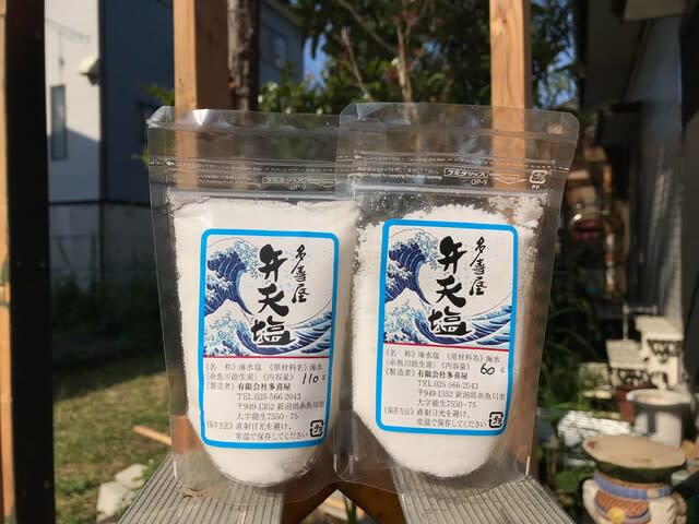 私の父方の先祖には、戦に敗れて上杉謙信を頼って越後に落ちてきた坂東武者がいて、江戸時代にはヒスイ海岸あたりに塩田を持ち、最盛期には3隻の船をつかって北前貿易で財をなしたそうだから、工房で塩を販売すると先祖も喜ぶだろう。ちなみに上杉謙信が甲斐に送ったとされる「義の塩」は、糸魚川産を含む越後の塩のことで、越中では能登産の塩の交易は妨害したと伝えられている。
