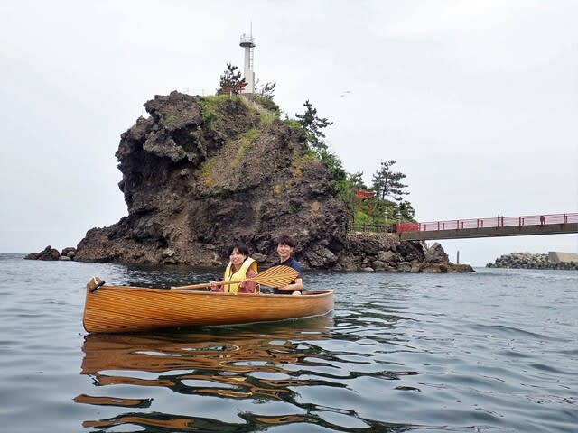 外海でも安定性がよく、レスポンス抜群、漕いでも速いのは、天才ヨットデザイナーの横山晃の設計だからで、初心者を乗せての弁天岩1周も危なげなかった。
