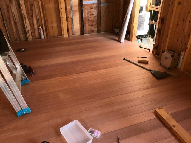 仕事柄、床材は摩耗と水に強いアビトンという南洋材を選択。ちなみに3坪(6畳間)分で送料込みで8万円ほど。