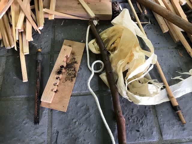 発火法でつかった焚き付けは、糸魚川の工務店「匠」の渡辺さんのカンナ屑。薄~い!と子供は驚いた。