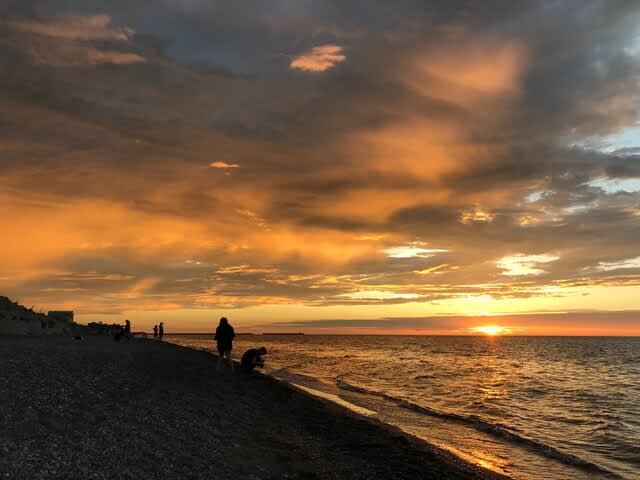 夕闇迫るヒスイ海岸で潜っていたら、帰り支度していた長野の家族連れが「きもちよさそうですね!」と、再び着替えて海に入った(笑)