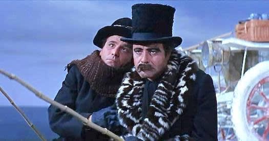右が悪玉のジャックレモンと手下のピーターフォーク。「チキチキマシン猛レース」ではブラック魔王と犬のケンケンになっている訳ですね。