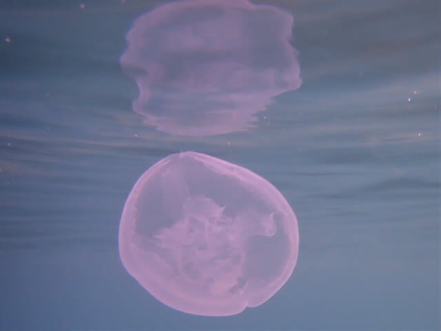 海面を漂うクラゲが、夕映えでピンクに染まる時がある。