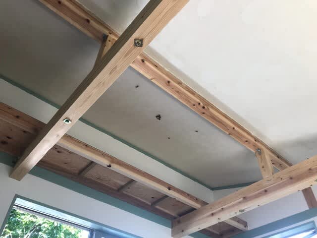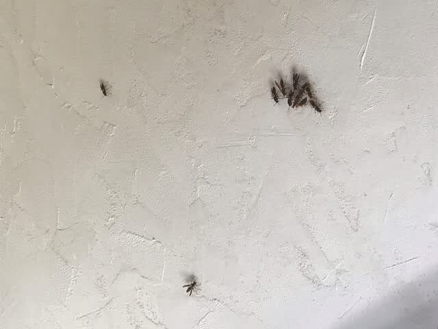 珪藻土を塗ってからアシナガバチが天井にとまってはいたが、帰宅したら壁には見向きもせず天井に大挙として集まってくるようになった。