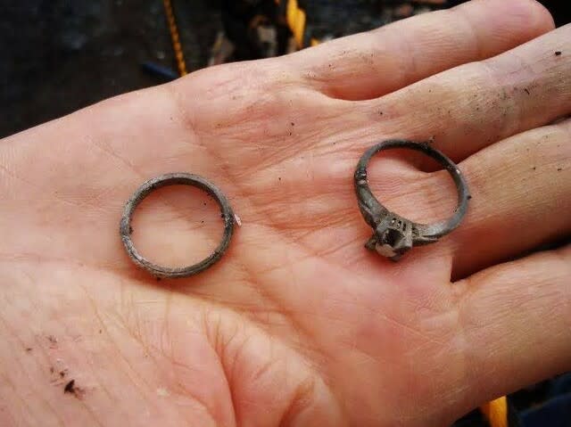 黒焦げの結婚指輪に「よかったぁ!」と涙ぐむ、被災した老婦人。
