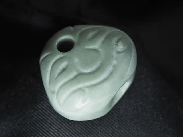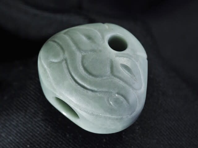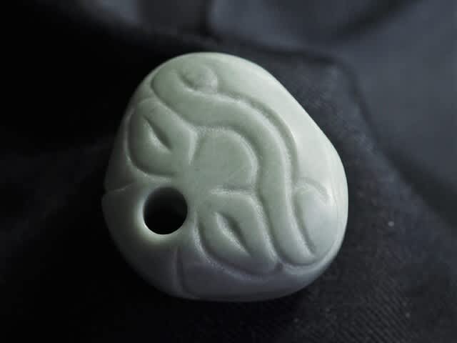 あの当時は地味で不人気な色のヒスイの活用がマイブームで、艶消し研磨してから線刻する土偶モチーフを連作していた。