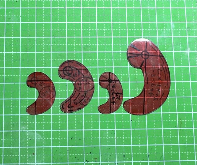 2番目と4番目は、そのプロポーション比較のために縦27㎜に縮小した型だが、際立ってデザインの違いがわかった。