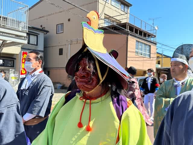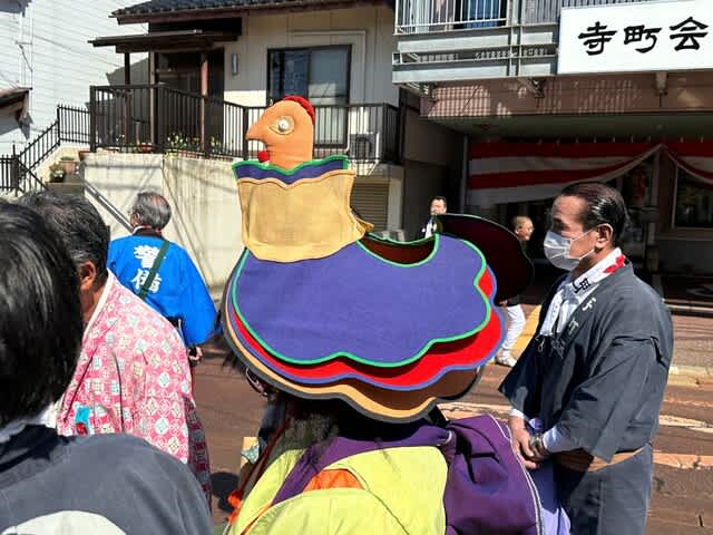 答えは祭りの象徴的な大役、鶏爺(とりじ)が被る鳥兜(とりかぶと)を図案化したもの。