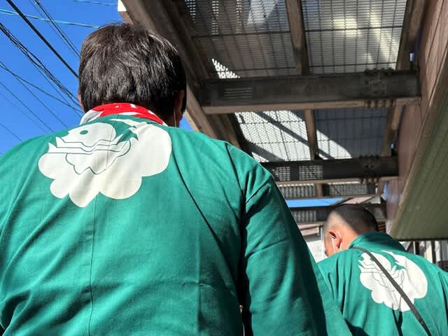 装束は寺町区は萌黄色、押上区は朱色に色分けされているが、その背中の図柄がかっこういいのだが・・・