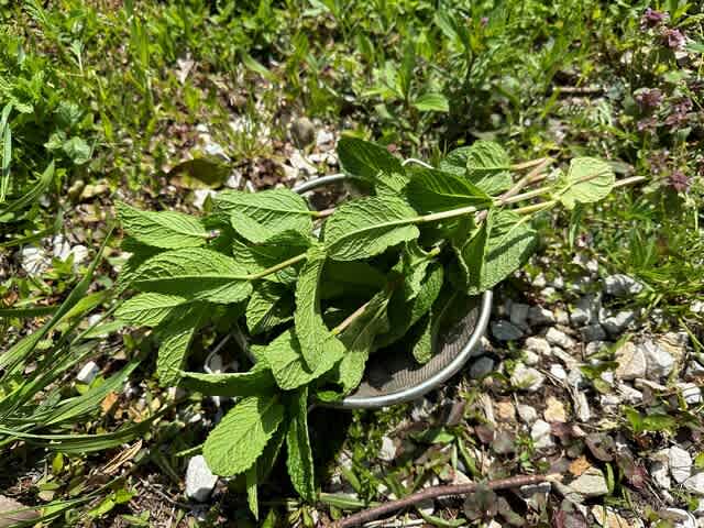 木陰にハッカも茂ってきたので私も採集。これは麦茶かわりの夏のお茶にして、清涼感があって美味いから来客に喜ばれている。