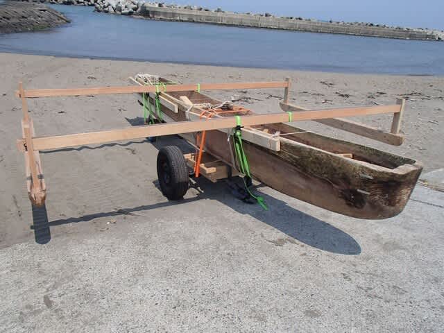 ありがたいことに海遊びで地域活性化に取り組む仲間がでてきて、6月下旬のイベントで丸木舟の出番がきた。海の先輩に相談したら、ジェットスキー用のドーリーを無料提供してもらえた。
